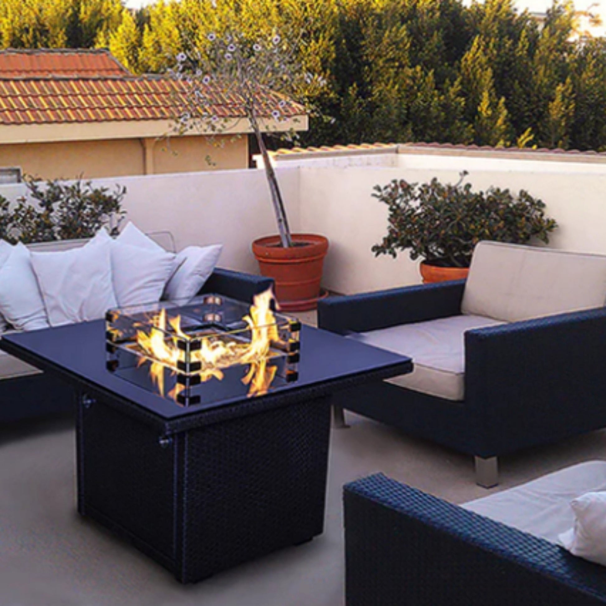 Foyer extérieur au propane avec carreaux de mosaïque carrés en ardoise de 30 pouces (surstock)